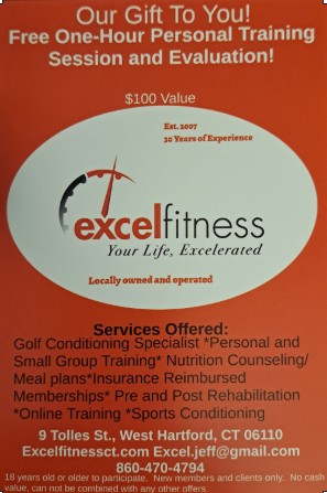 December 4th from 5:00 to 7:00 PM Excel Fitness will be hosting a holiday happy hour at the West Hartford Gastropark. The 1st 10 members and guests of Excel Fitness will receive a small token of our appreciation. We will also be collecting new toys for needy local West Hartford residents. Additionally, warm clothing including hats, mittens, coats in new or like new condition will be collected. Dicounts on personal and small group training for new members and clients.